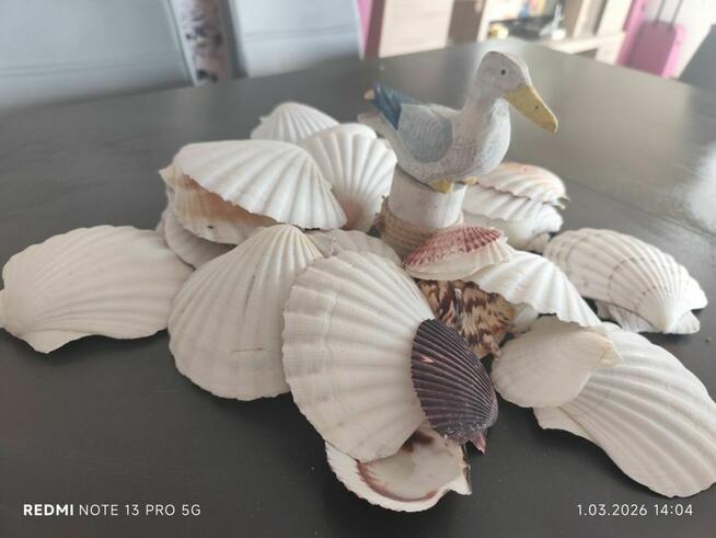 Duży zestaw muszelek ozdobiony ręcznie wykonanym ptaszkiem. Idealny do dekoracji wnętrz lub jako prezent dla miłośników ...